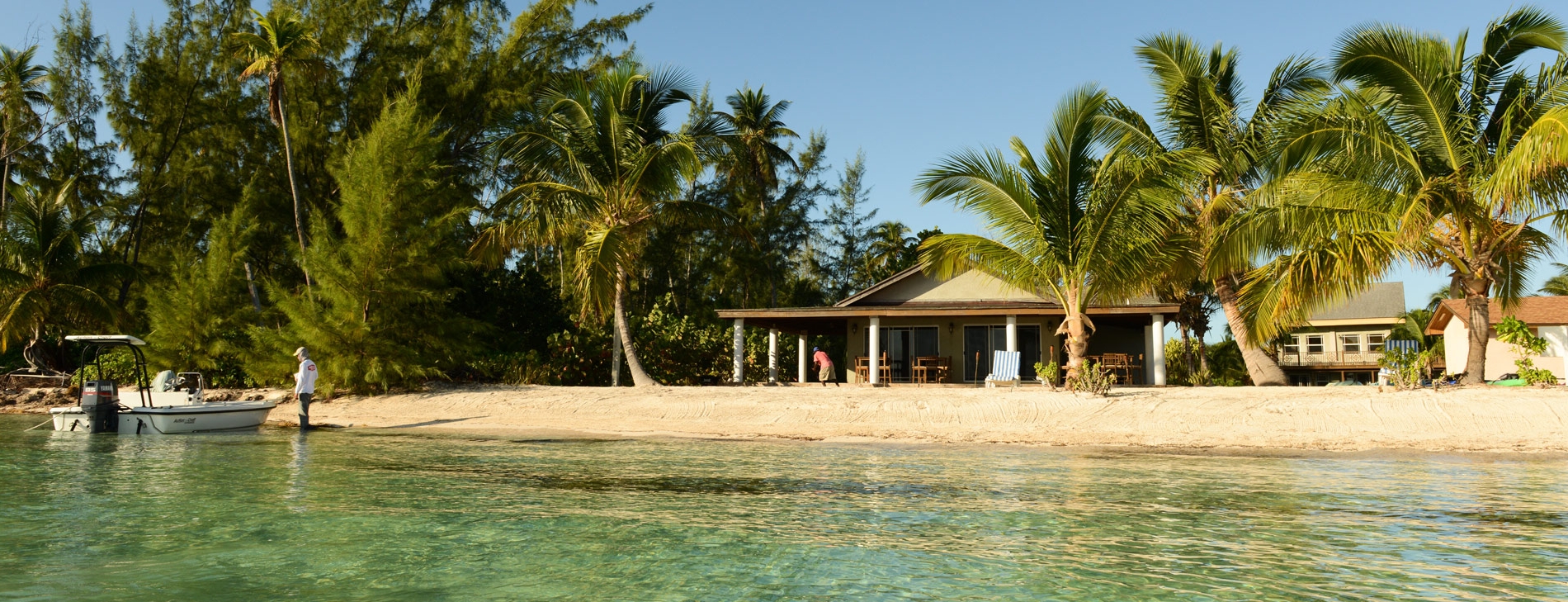 Remote Mangrove Cay is sandwiched between two sea-green bights, separating it from north and south Andros and creating an island of black coral shorelines, gleaming deserted beaches, and dense pine forests. Moxey Town, known locally as Little Harbour, rests on the northeast corner in a coconut grove. Pinkpiles of conch shells and mounds of porous sponges dot the small harbor of this commercial fishing and sponging community. Anglers come on a mission, in search of giant bonefish on flats called “the promised land” and “land of the giants.” A five-minute boat ride takes fly-fishers to Gibson Cay to wade hard sand flats sprinkled with starfish.